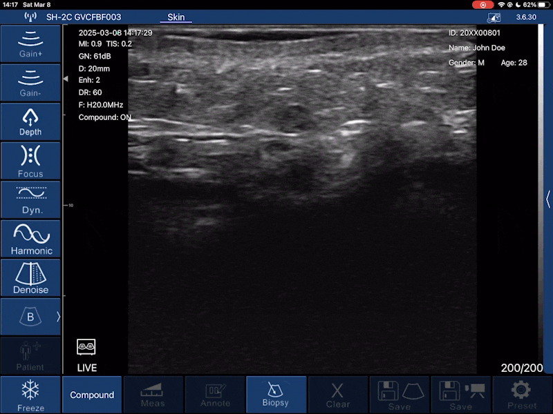 Due to its ease of use, wireless connectivity, and flexible usability, the device is suitable for both inpatient and outpatient applications. Emergency rooms, intensive care units, and outpatient emergency services all benefit equally from the reliable use of this point-of-care ultrasound system. In pain therapy and interventional radiology as well, the mobile ultrasound enables precise injections and supports physicians in accurately guiding needles under real-time visualization.